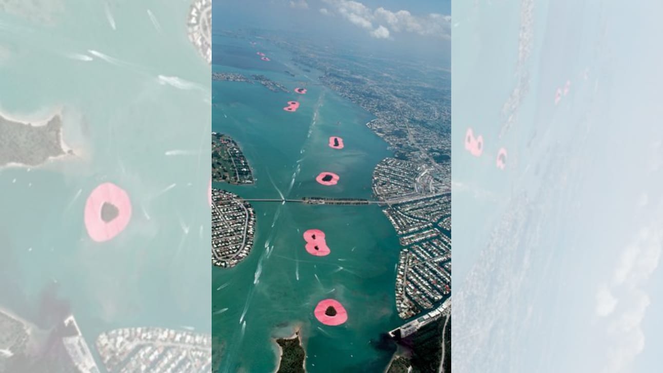 The bright fabric transformed the islands that were otherwise camouflaged by the surrounding water into glistening pink donuts that were viewable from thousands of feet in the air.