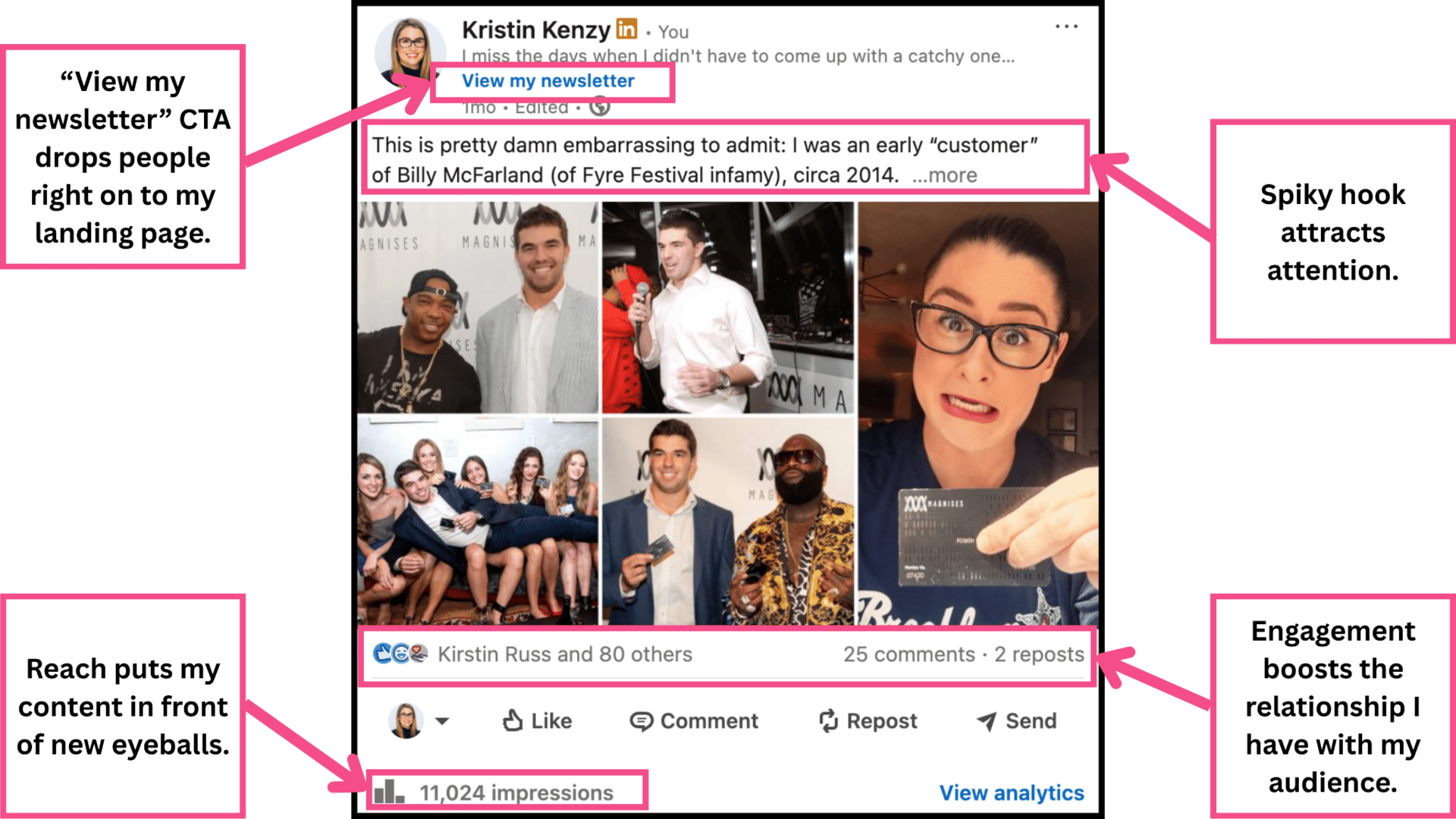 Because LinkedIn has been my primary growth lever for Drunk Business Advice since day one. It’s a pretty simple formula. 👇